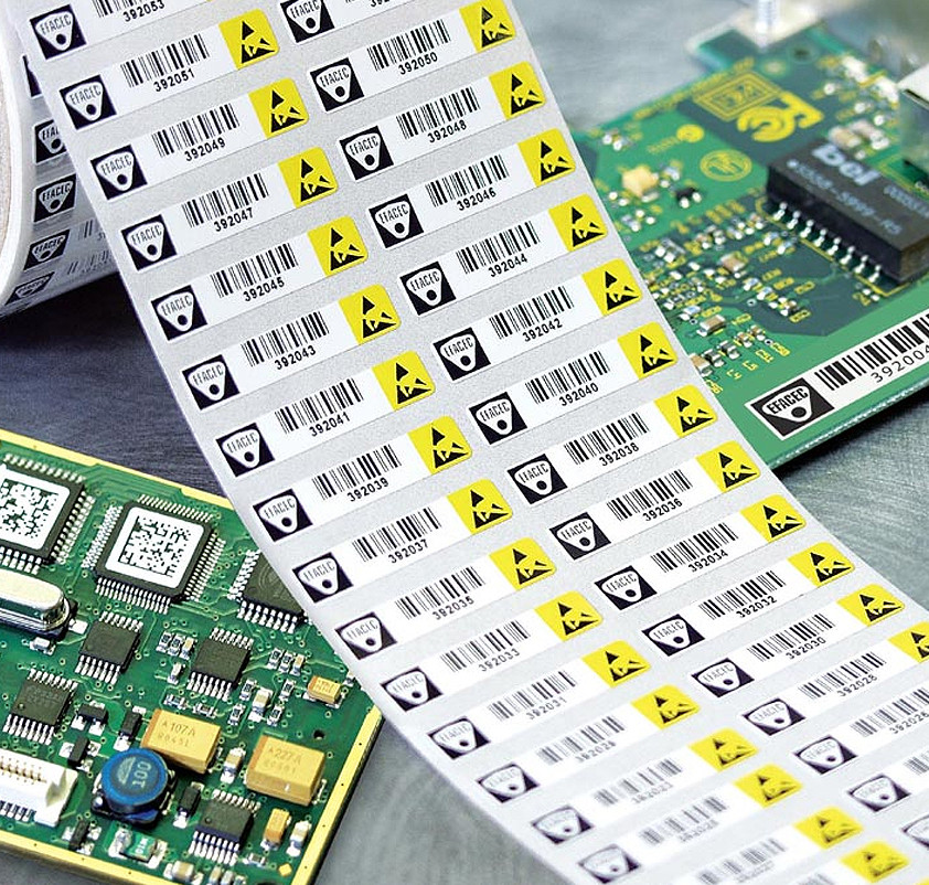 Étiquettes sécurisées ESD, 2 millimètres d'étiquettes en polyester dissipatif électrostatique brillant