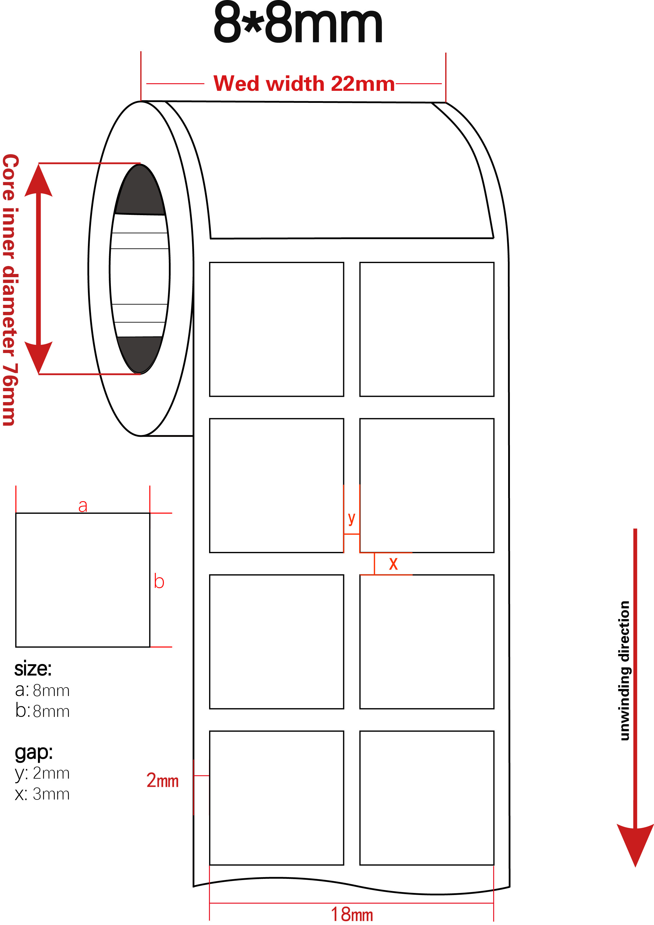 Taille de l'étiquette | 8 mm*8 mm/ personnalisable |