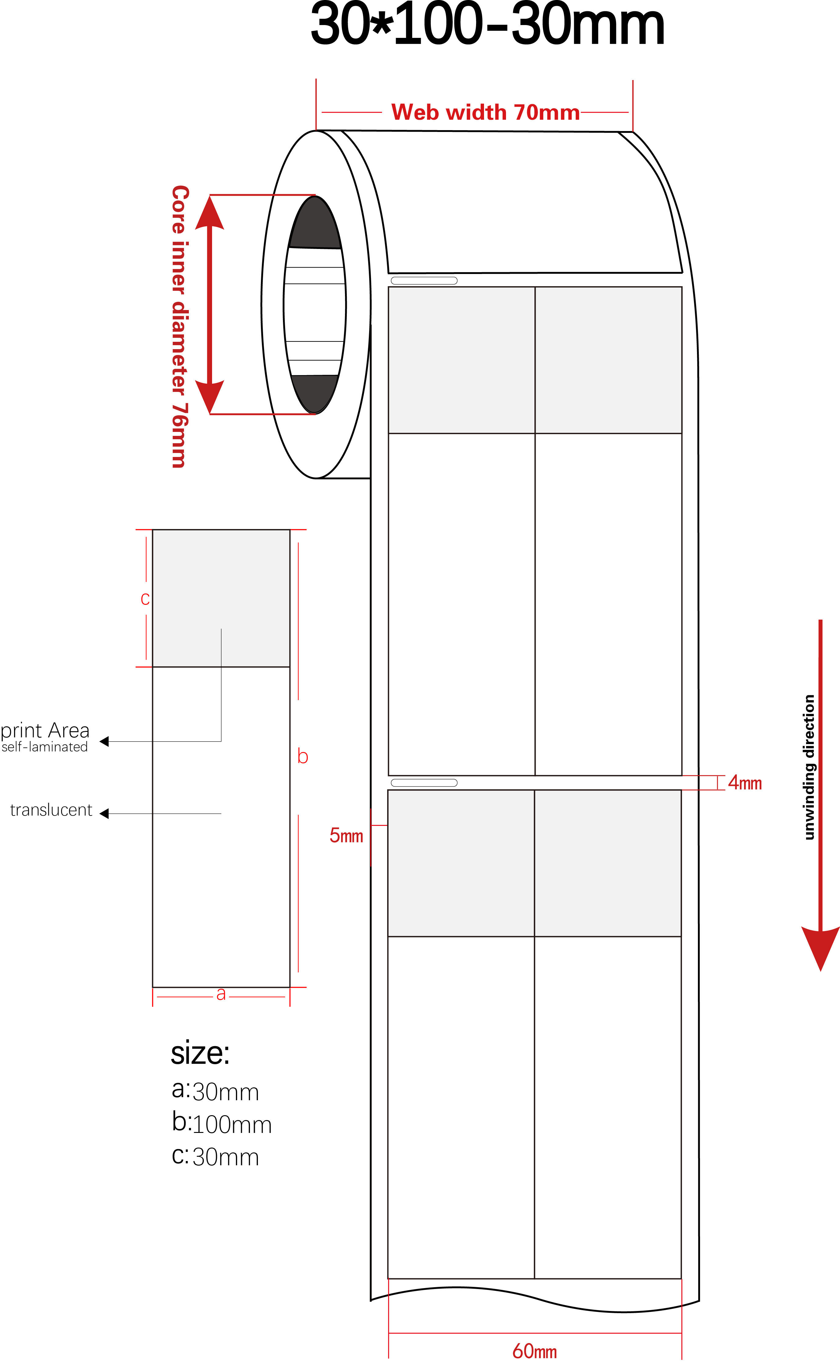 | Taille de l'étiquette | 30*100-30 mm/ Personnalisable |