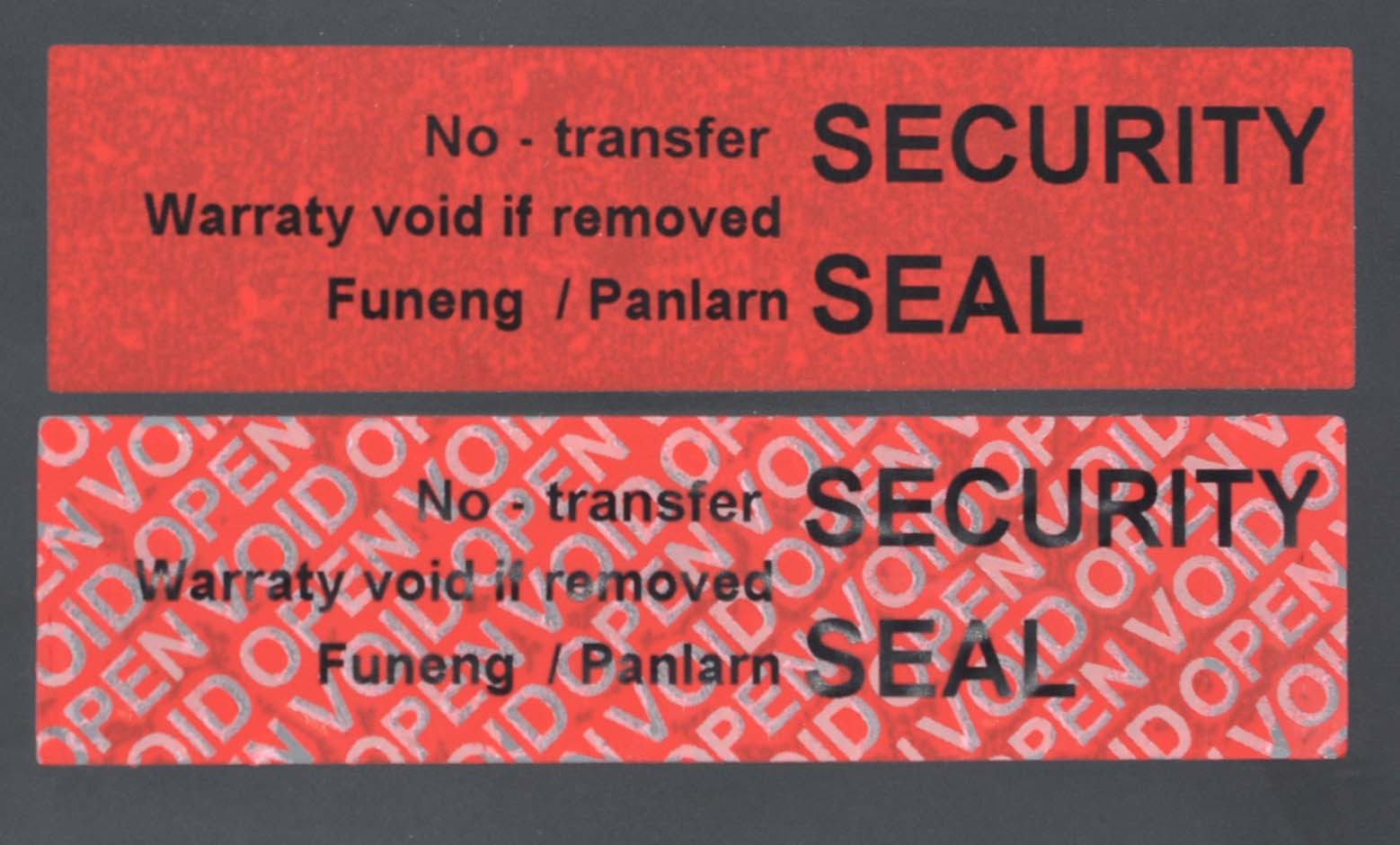 Sur le dos de l'autocollant, un message imprimé spécial a été formé par un processus spécial, qui est évident pour un accès non autorisé (typiquement, le message contient "VOID"," VOIDOPEN ","OPEN" ou d'autres mots prédéfinis conçus par nos clients).Vous ne pouvez pas voir le mot caché "OPEN VOID" avant de l'ouvrir.Une fois ouverte, la face sera marquée " OUVERT VOID ", l'article appliqué sera affiché et l'étiquette ne peut pas être scellée.Seule une partie de la couche anti-contrefaçon de l'étiquette est envoyée à l'objet de l'application.